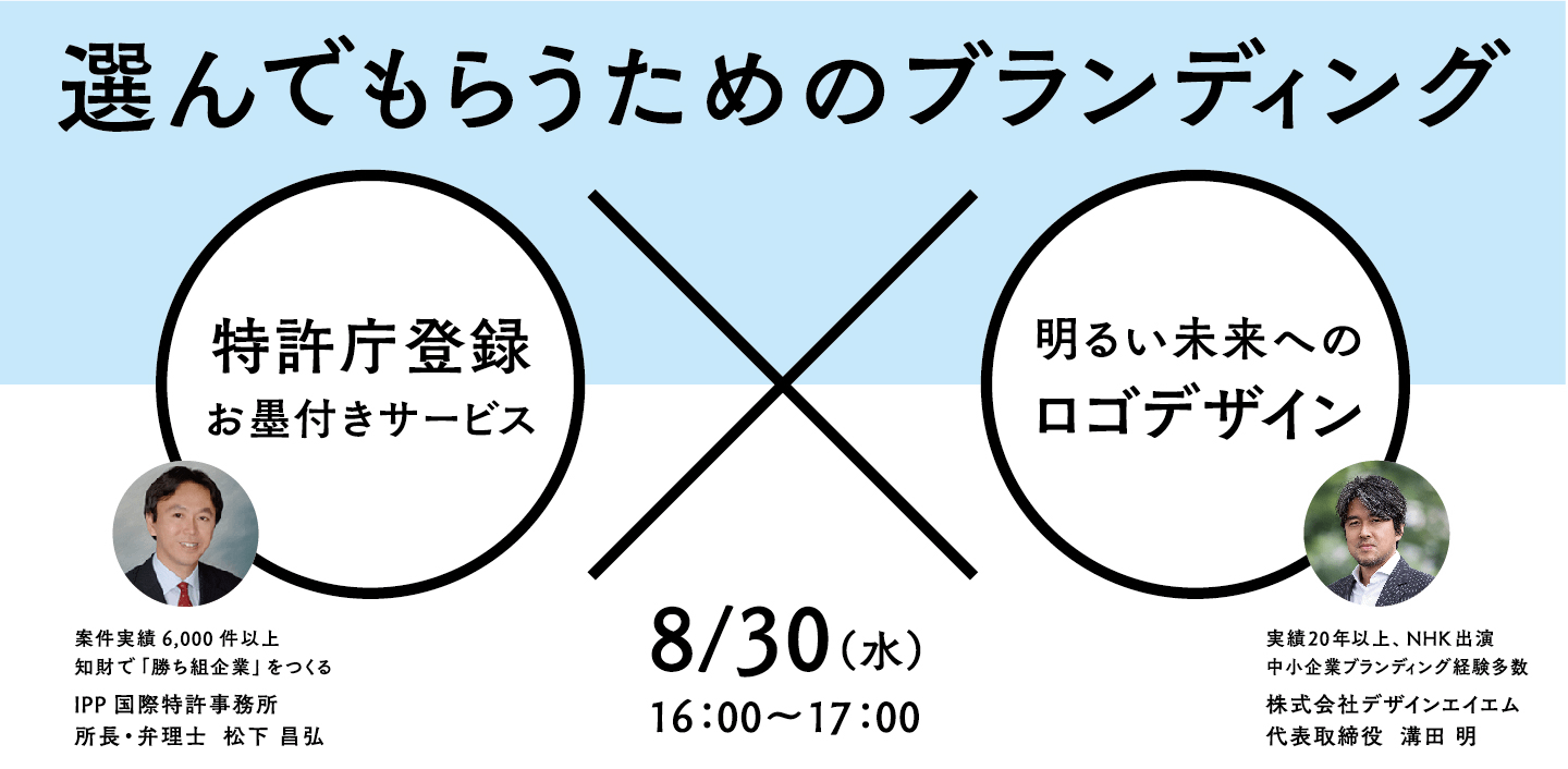 【終了】8月30日(水)16:00~ オンラインセミナー「“選ばれる会社”になるためのブランディング – 特許庁登録 × デザイン -」