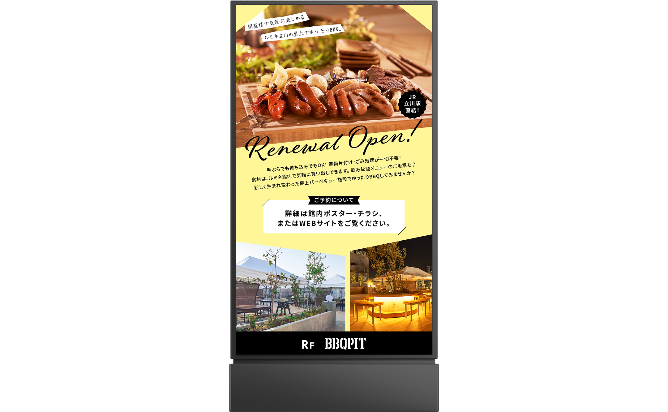 無事に出店が決まった後は、館内やその周辺に告知するポスター、チラシ、デジタルサイネージ等のデザイン、写真撮影を依頼しています。