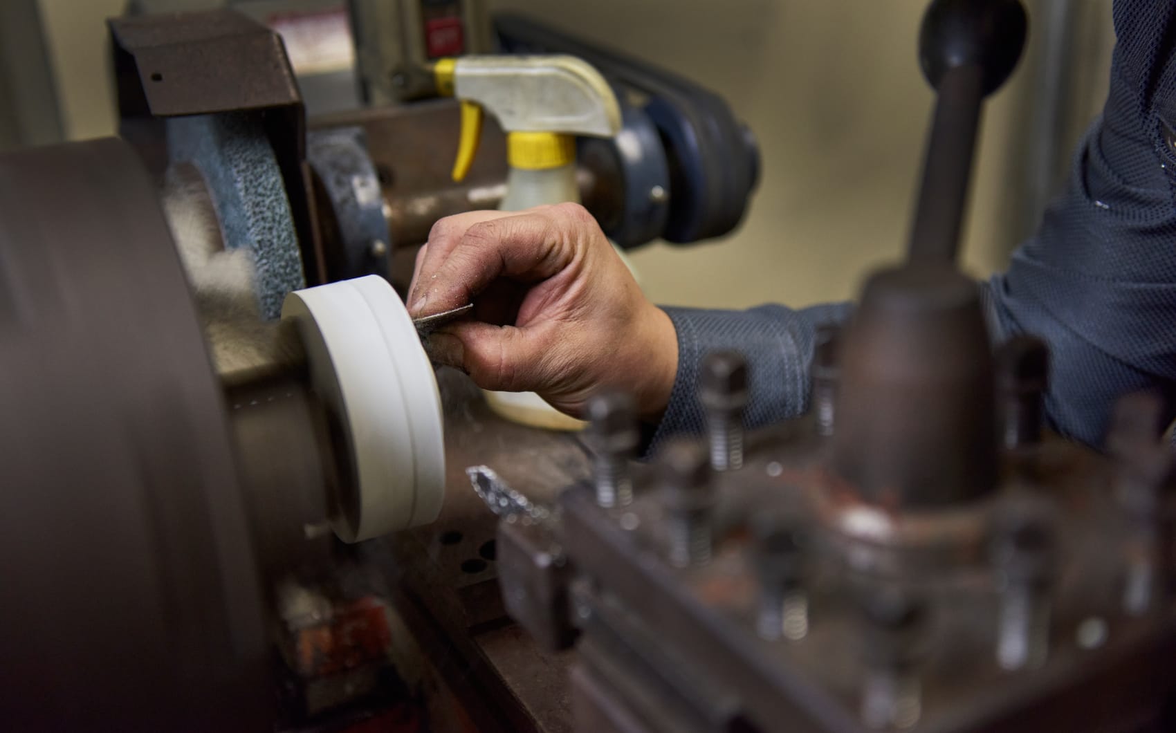 ウォータージェットカッターやマシニングセンターなど加工機械の導入を進めながら、職人の手作業による技術力も重視。世界で通用する、強い組織づくりに取り組んでいます。 - Background
