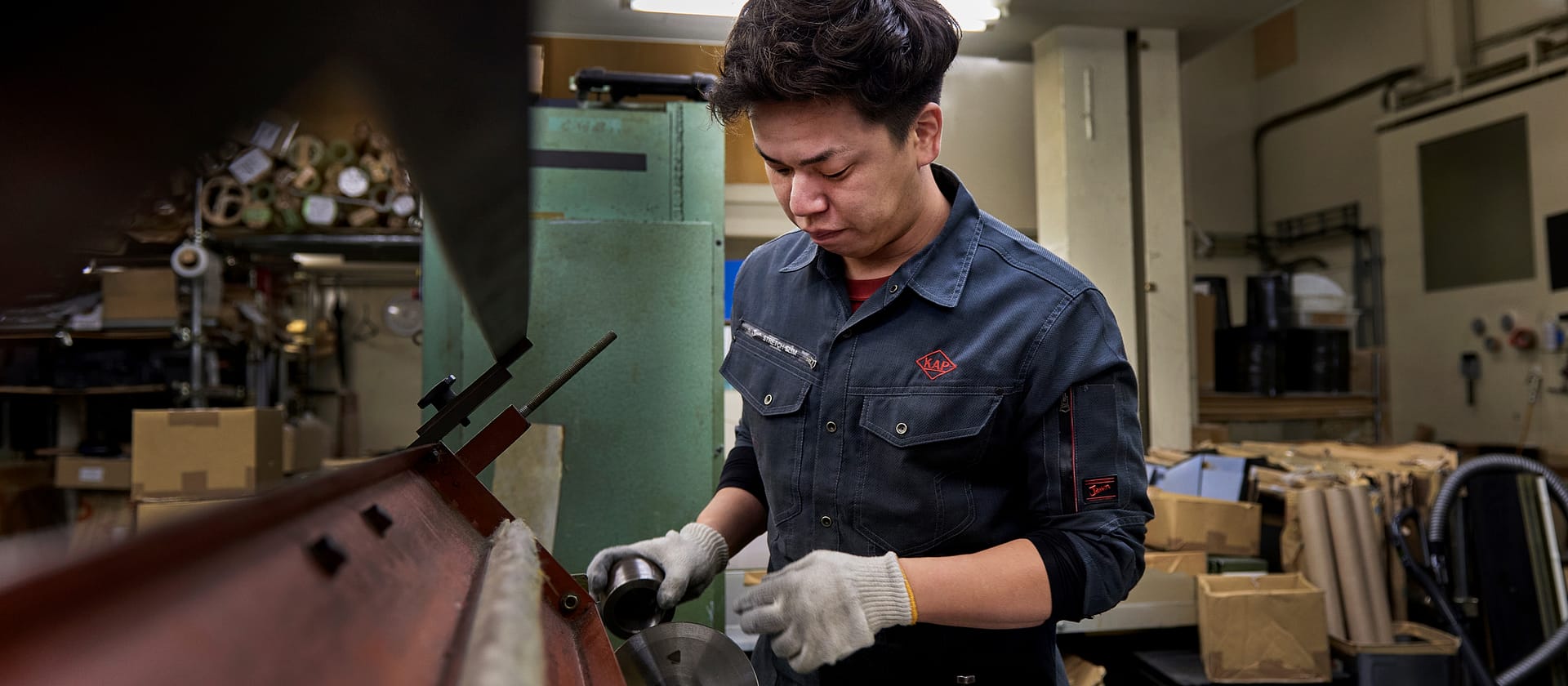 ウォータージェットカッターやマシニングセンターなど加工機械の導入を進めながら、職人の手作業による技術力も重視。世界で通用する、強い組織づくりに取り組んでいます。 - Background