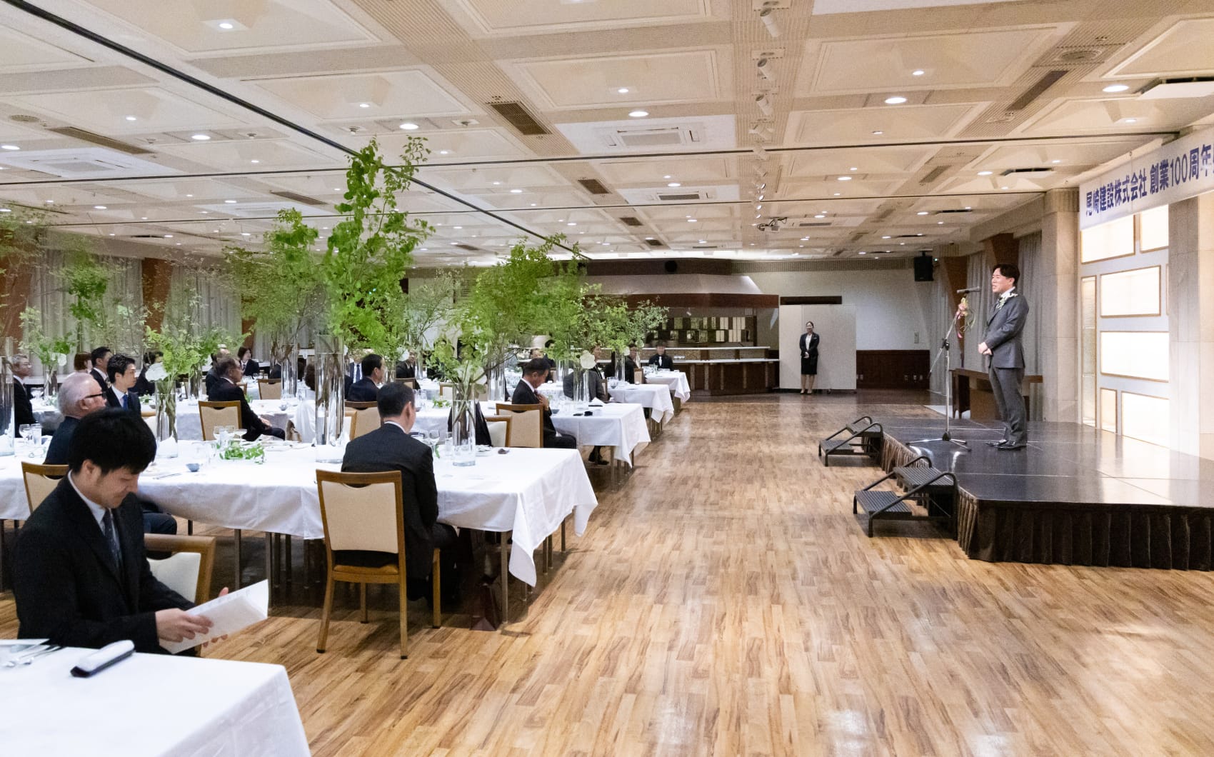 100周年の節目に、これまでの歩みと未来への想いを表現するオープニングムービーを制作しました。地域と共に築いてきた歴史を振り返りながら、次の100年へ進む姿勢をシンプルに伝えています。当日は「感謝の夕べ」の冒頭で上映し、社員や関係者の皆さまへ企業の姿勢を共有しました。
