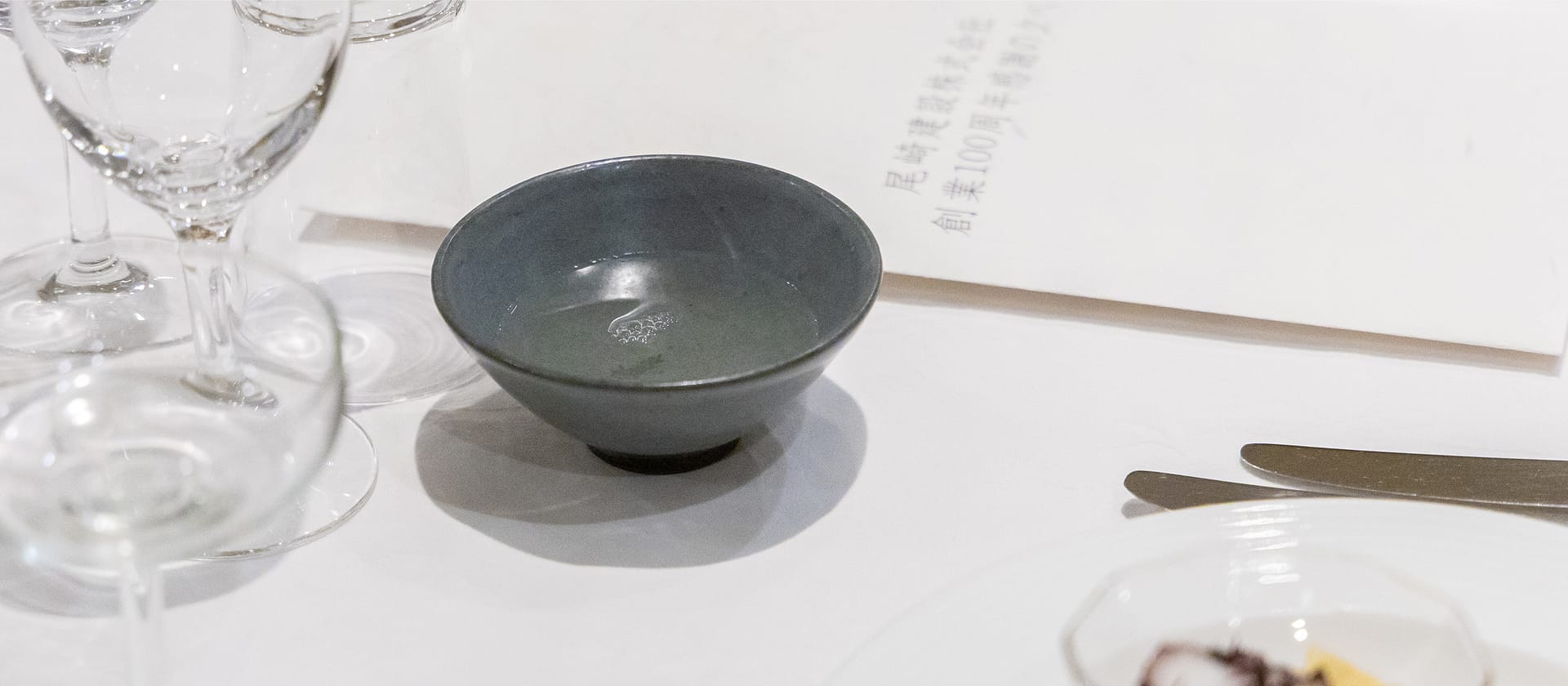「感謝の夕べ」出席者に配布した、記念品。地元高知の作家に依頼し、オリジナルの盃を作成しました。粘土や釉薬に高知の土や木を使用するなど、材料から拘りました。