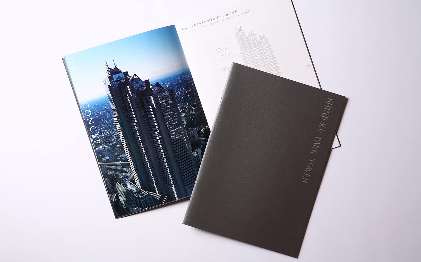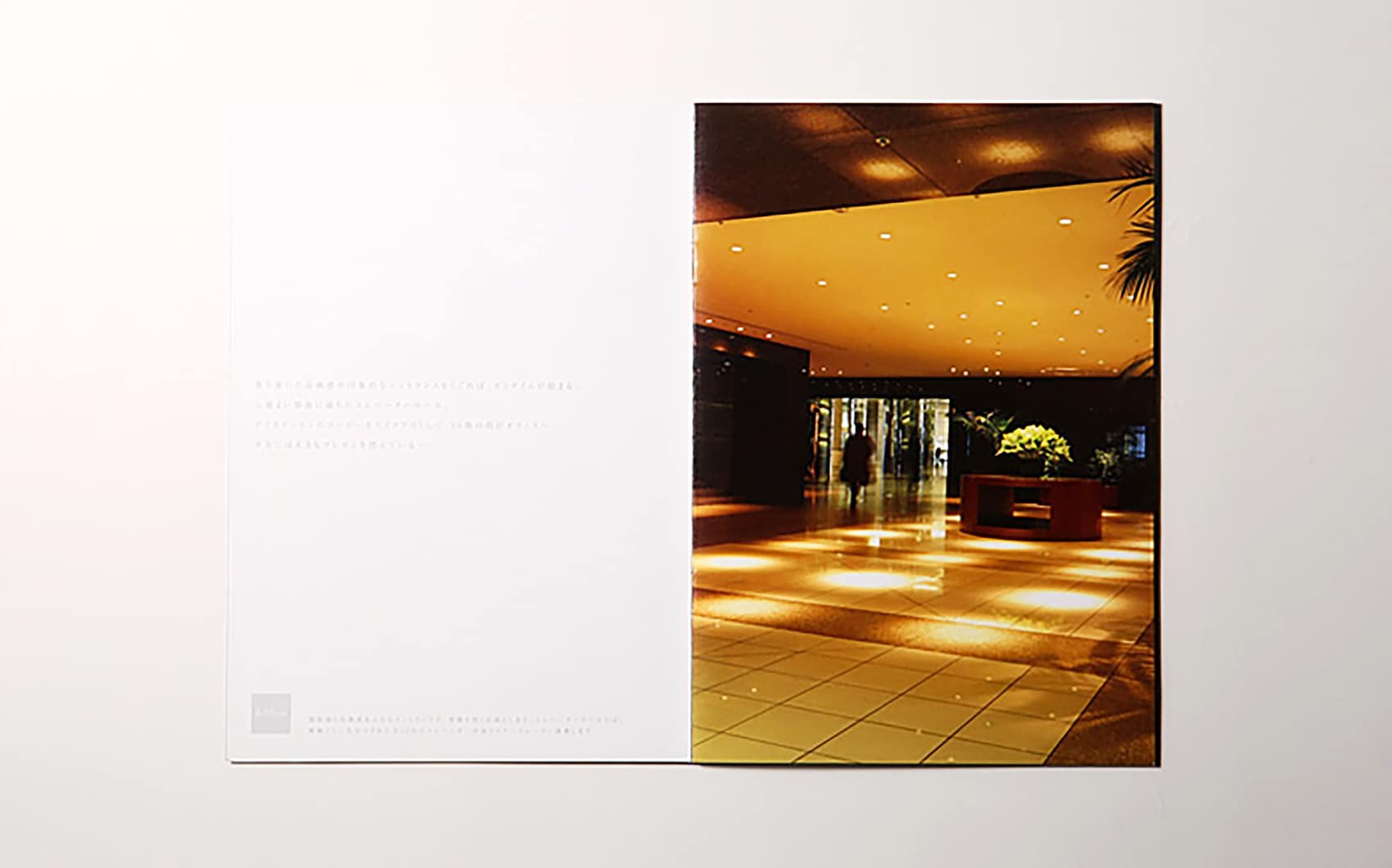 A5判の小さな冊子に、「新宿パークタワーで過ごす一日」を時系列で収めました。働く人の視点で、朝の光、エレベーターホールの静音、ガラス越しの夕陽、パークハイアットからの夜景――といった“日常のさりげない風景”を丁寧に拾いまとめました。余白を活かした最小限のレイアウトと短いキャプション。施設の世界観と体感を静かに伝えています。