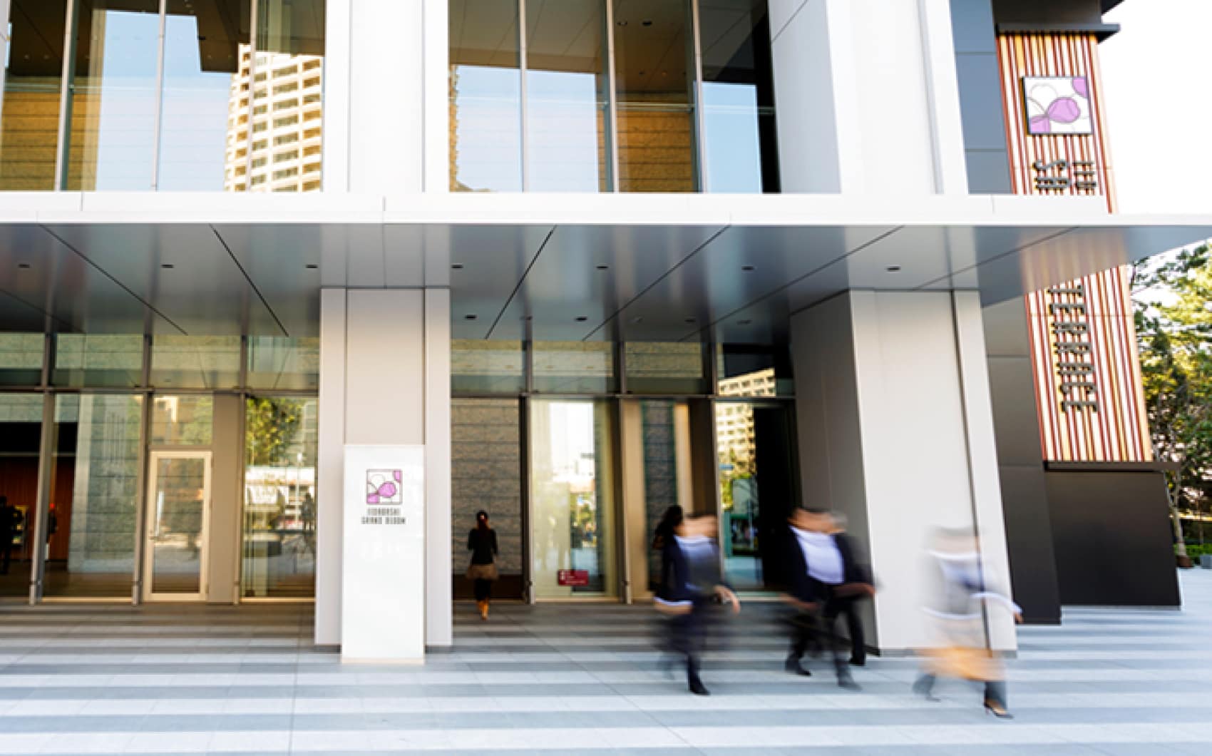 - 三井不動産の管理するオフィスビルとして他ビルとの統一感を持たせつつ、飯田橋グラン・ブルームらしさも表現するデザインです。