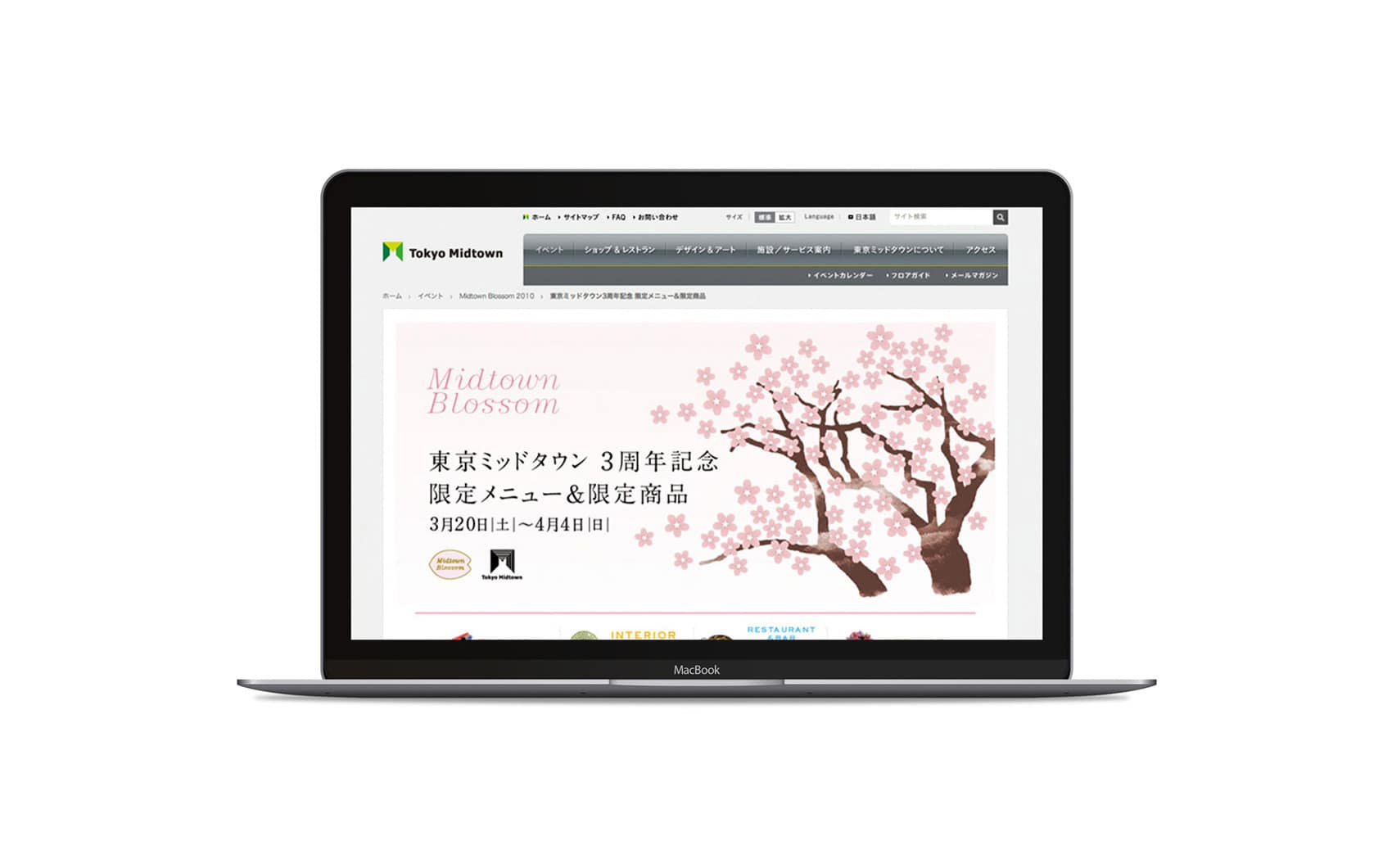 ブロッサムキャンペーンのWEBサイト。グラフィック同様にやわらかい春の陽気を表現しました。