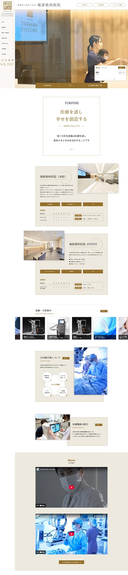 - WEBサイトも全面リニューアル。手術や診療紹介を充実させ、白内障手術についての詳しい解説をわかりやすく掲載し、医院をより知っていただけるようにしました。先進医療認定施設として認定されており、地域と寄り添いながらも、外観からは中々わからない、大学病院並みに整えられた最新の設備についても紹介しています。